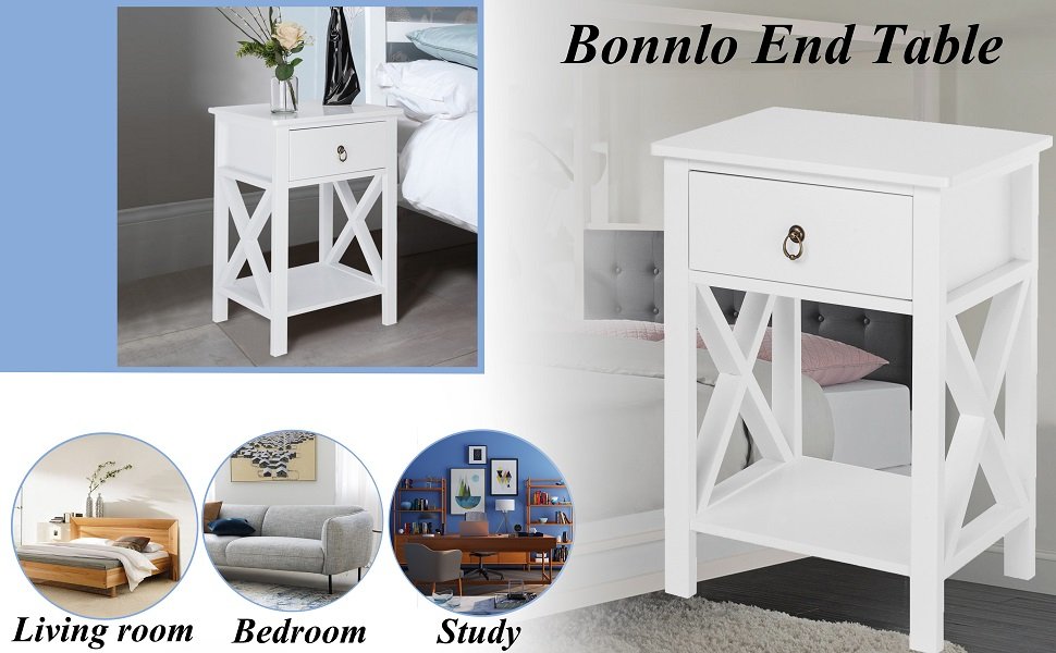 Bonnlo Bedside Nightstand 24.5-inch Tall End Tables, White